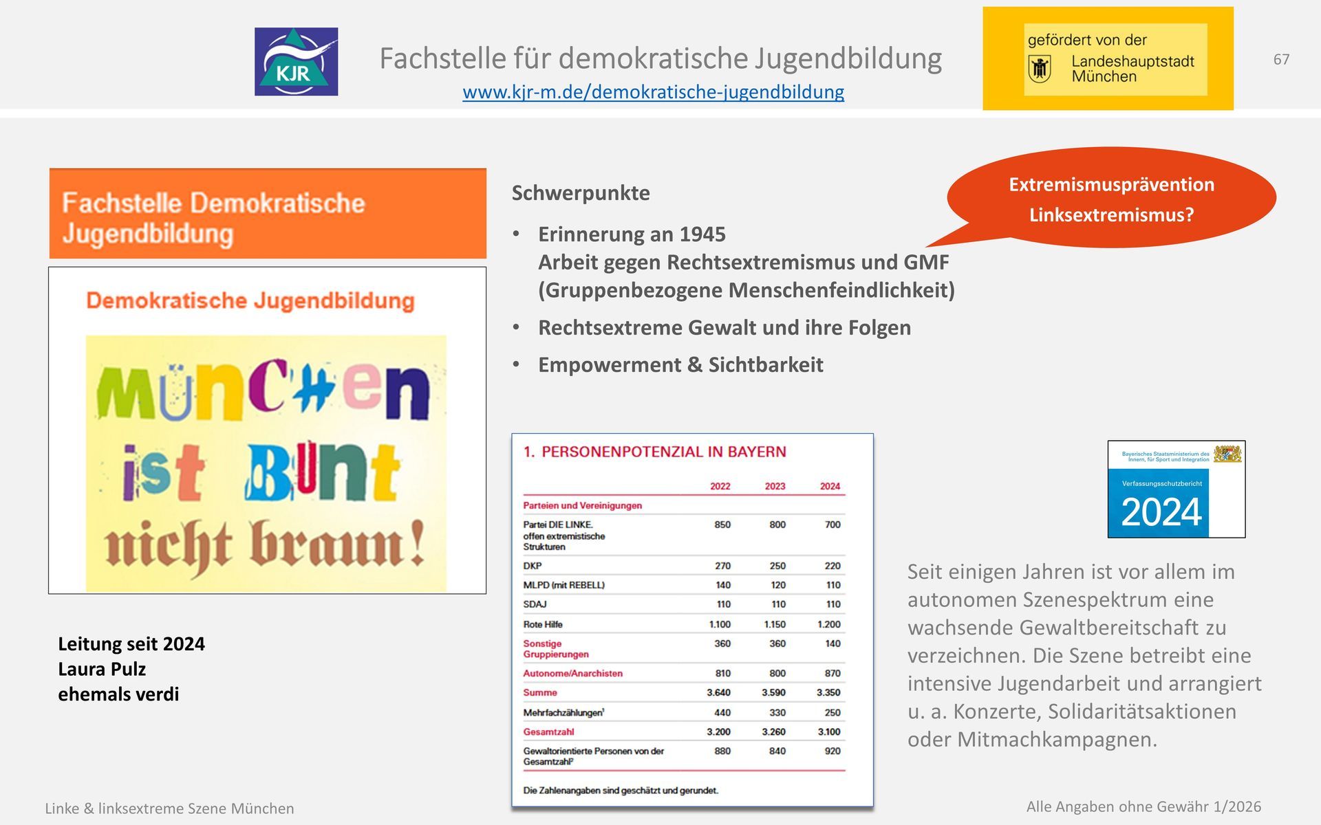 Die CSU hat im Februar 2025 den dritten Antrag seit 2016 gestellt; Erweiterung des Aufgabenbereichs der Fachstelle inklusive Linksextremismus.